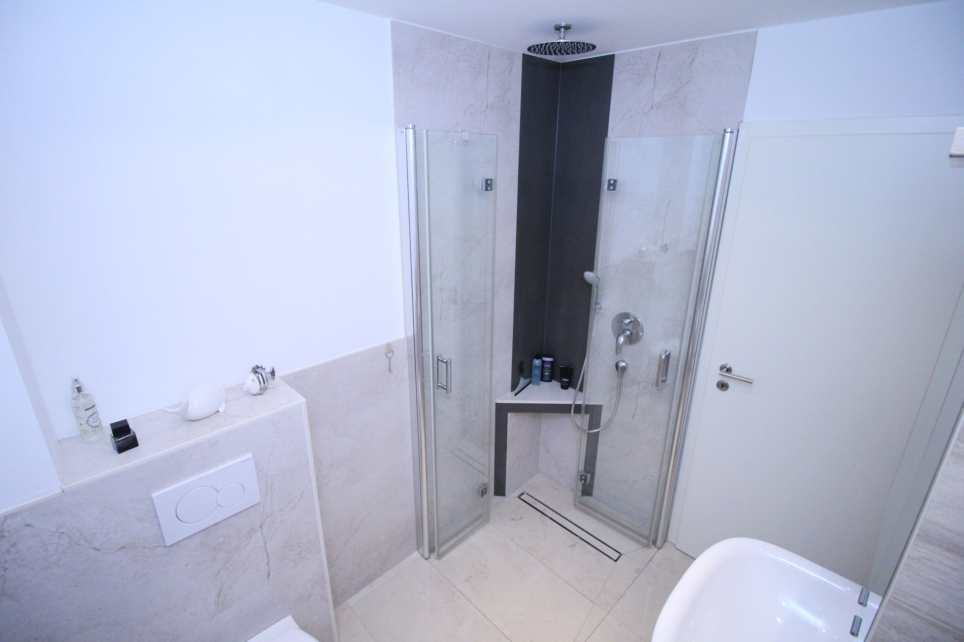 In geräumigen Bädern bieten freistehende Wannen oder begehbare Duschen mehr Komfort und sind optisch ein absolutes Highlight.